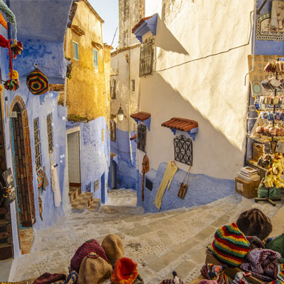 Dopo colazione, partenza verso le montagne del Rif. Il viaggio regala scorci bellissimi: villaggi berberi nascosti tra le colline, uliveti e panorami che cambiano ad ogni curva. Arrivati a Chefchaouen, vi perderete tra i vicoli dipinti di blu e i piccoli negozi artigianali. La piazza principale Uta el-Hammam è il luogo ideale per sorseggiare un tè alla menta mentre osservate la vita locale. La kasbah e i suoi giardini offrono un’ottima introduzione alla storia della città, mentre i balconi fioriti vi regaleranno una vista unica sui tetti blu